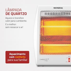Com o início da estação mais fria, o Aquecedor de Ar Quartzo Comfort Air III A-16 será o maior aliado do seu lar. Multifuncional, ele aquece e desumidifica o ar no ambiente. Possui duas temperaturas, com potências de 450W e 900W, para você regular conforme a sua preferência. Vem com lâmpadas de quartzo para um maior aquecimento, desligamento automático em casos de queda e ainda é silencioso.
