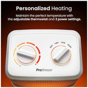 Aquecimento super rápido Este aquecedor elétrico é projetado com elementos de aquecimento cerâmicos avançados que fornecem aquecimento mais rápido e com maior eficiência energética do que um aquecedor elétrico tradicional. Pequeno e poderoso, este é o aquecedor de ambiente perfeito para uso no quarto, escritório e sob a mesa. Aquecimento poderoso Este pequeno aquecedor possui modos de energia de 750 W Baixa e 1500 W Alta, bem como um modo de apenas ventilador suave. Reduza suas contas de energia usando este aquecedor de ambiente com eficiência energética para aquecer quartos individuais, em vez de aquecer dispendiosamente toda a sua casa. Termostato ajustável Este aquecedor portátil com termostato possui um controle de termostato fácil de usar e totalmente ajustável que monitora a temperatura do ar ao redor para obter uma eficiência de aquecimento ideal. Recursos de segurança avançados A proteção contra superaquecimento integrada e um interruptor anti tombamento aprimorado garantem que o mini aquecedor desligue instantaneamente em qualquer situação insegura, proporcionando total tranquilidade