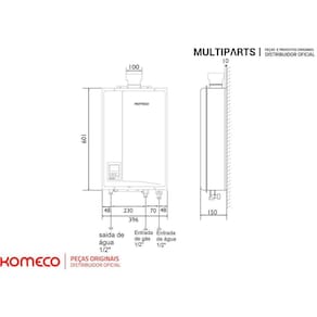 Para melhor aproveitamento e funcionamento de seu aquecedor komeco recomendamos a utilização com pressão de água dinâmica igual ou superior a 1,0 kgf/cm 10mca na ducha ou torneira mais alta. Atenção: se a pressão de água existente for inferior ao indicado acima pode ser necessário a colocação de um pressurizador. Verifique no seu projeto ou com seu profissional habilitado.