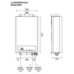 Aquecedor komeco pintado gn 16lt mod.Home ko16dMarca: komecoProduto: aquecedor a gásTipo: digitalTipo de gás: gnTensão elétrica: bivoltAlimentação: elétricaVazão: 16 l/minQuantidade de pontos de uso que o aquecedor atende: 2 duchas de 8l/min ou 1 ducha de 8l/min + 2 torneiras de 4l/minPressão de funcionamento mínima: 10 mcaPressão de funcionamento máxima: 60 mcaExaustão: forçadaAmbiente indicado: apartamentoSensor de chama: simAprovado pelo inmetro: simPotência do aquecedor de água a gás: 22500 kcal/hConsumo gn: 2,36 m/hDiâmetro da chaminé: 80 mmConexão/entrada: 1/2 Diâmetro da rosca em polegadas: 1/2 Cor: brancoTonalidade: brancoModelo: ko 16dPeso e medidasAltura: 51,6 cmLargura: 32 cmProfundidade: 15 cm Marca: Komeco Produto Novo