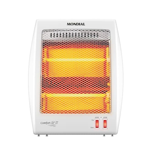 Com o início da estação mais fria, o Aquecedor de Ar Quartzo Comfort Air III A-16 será o maior aliado do seu lar. Multifuncional, ele aquece e desumidifica o ar no ambiente. Possui duas temperaturas, com potências de 450W e 900W, para você regular de acordo com a sua preferência. Vem com lâmpadas de quartzo para um maior aquecimento, desligamento automático em casos de queda e ainda é silencioso. Saiba mais sobre o A-16 da Mondial: