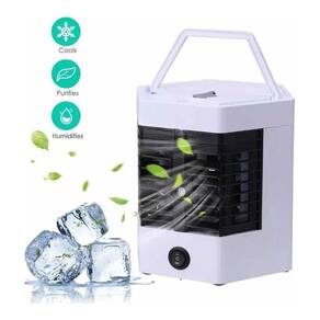 Ar Condicionado Climatizador com Refreshing Arctic Air Ultra Mini Ar Condicionado, Climatizador e Umidificador de ar USB Portátil com Recipiente extra para Gelo. apresentando o novo e aprimorado, Arctic air Ultra-Pro, o refrigerador de espaço pessoal que transforma espaços quentes em lugares refrescantes Agora melhor do que nunca com o dobro da potência de resfriamento com recipiente para Gelo e pulverização de névoa de água Arctic air Ultra-Pro resfria, umidifica e purifica qualquer espaço pessoal O segredo é a tecnologia de hidro-chill, que puxa o ar quente da sala através de seu filtro de resfriamento de ar evaporativo e o transforma em ar fresco e refrescante instantaneamente Basta adicionar água ao tanque de água de enchimento superior, pressionar o botão e começar a sentir o ar fresco e refrescante O Arctic air Ultra-Pro pode funcionar por até 10 horas por enchimento e com o dobro da potência de resfriamento, você permanecerá fresco e confortável por horas Personalize sua experiência de resfriamento com 2 Funções com névoa de água ou sem , . O melhor de tudo é que o design leve e portátil do Arctic air Ultra permite que você o leve para qualquer lugar Refrigerador de ar evaporativo Arctic Air TM Ultra-Pro Refrigerador de espaço pessoalDois modos: névoa e ventilador / névoa Apresenta a tecnologia Hydro-Chill TM , usando o sistema de resfriamento interno para puxar o ar quente de qualquer sala e transformá-lo em ar fresco e refrescante Energia eficiente; livre de freon Operação silenciosa Design leve e portátil.