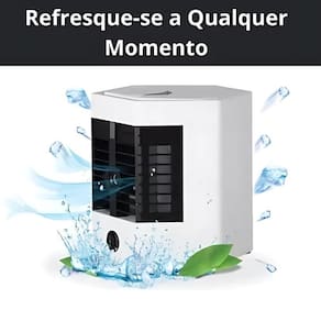 Ar Condicionado Com Umidificador: Inovação E Conforto Fique fresco e confortável. Perfeito para todas as estações do ano, pois funciona como ar-condicionado, purificador e umidificador de ar Você pode deixar em qualquer ambiente da casa, em escritórios, estabelecimentos, e onde você quiser Você pode fazer seus afazeres domésticos, deixar na mesa de estudos ou trabalho e se refrescar durante o verão. Possui botão para ligar ou desligar a luz de led que indica as velocidades. Para deixar o ambiente mais frio, molhe o filtro e coloque no congelador antes de usar A água do reservatório dura de 8 a 10 horas, dependendo da velocidade utilizada. Pode utilizar gelo também no reservatório.