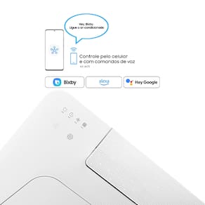 Conexão Wi-Fi via SmartThings¹ : Controle de qualquer lugar, a qualquer momento e com comando de voz. Utilizando o app SmartThings, é possível controlar o Ar-Condicionado Inverter Samsung WindFree Cassete 1 Via, diretamente do seu smartphone. Ligue, desligue, controle a temperatura e muito mais. Tudo isso é possível também por simples comandos de voz.