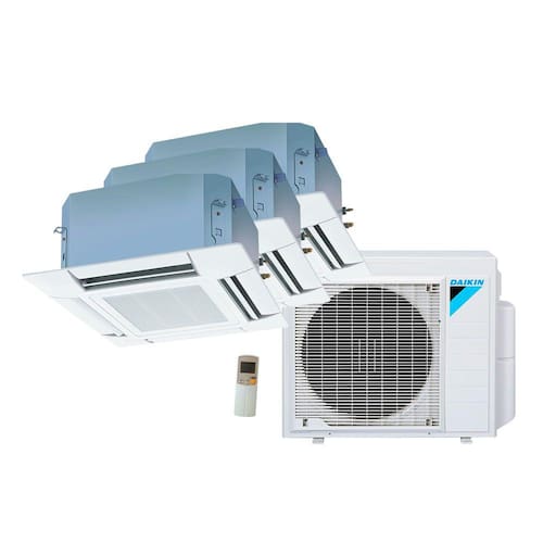 O Ar Condicionado Multi Split Cassete 4 Vias Inverter Daikin 2x9000 + 1x20000 BTU/h Quente e Frio Monofásico 3MXS24PMVM - 220 Volts possui design diferenciado, próprio para ambientes sofisticados, tornando-se um equipamento discreto e com um baixo nível de ruído. Permitem uma instalação completamente plana no teto.