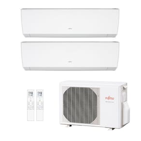 Ar-Condicionado Multi Split Inverter 2 Ambientes FujitsuAr-Condicionado Multi Split Inverter Fujitsu oferece economia, silêncio e flexibilidade para garantir o máximo de conforto para vários ambientes.Com o Multi Split Inverter Fujitsu você tem o máximo de conforto e o melhor, ocupando o mínimo de espaço.Confira algumas das vantagens:Alta Eficiência: A alta eficiência é obtida através do uso do compressor DC duplo rotativo, controle DC inverter e motor DC do ventiladorUnidade Externa Compacta: A unidade externa, por ser compacta pode ser instalada facilmente em varandas, telhados, paredes ou em qualquer lugar.Compressor DC Duplo Rotativo: A eficiência é melhorada, especialmente, num intervalo entre alta velocidade de rotação com alta carga até baixa velocidade de rotação com baixa carga, onde a maioria do tempo o compressor opera, e a alta potência é produzida com um baixo consumo de energia. O compressor duplo rotativo também gera baixo nível de vibração e uma operação silenciosa.Instalação Flexível: O sistema Multiflexível pode ser instalado em residências grandes ou múltiplos andares.Filtro de Catequina de Maçã: Poeira fina, esporos de bolor invisíveis e micro-organismos nocivos são absorvidos pela eletricidade estática do filtro e o crescimento é inibido e neutralizado pelo polifenol extraído de maçãs.Filtro desodorizante de lon de longa duração: A força dos íons negativos remove complemente as sujeiras e odores do ar mantendo o ambiente confortávelReinício Automático: Em caso de queda de energia.Modo Econômico: Limita a corrente máxima de operação e executada a operação com consumo de energia suprido.Função PowerFul: Operação com fluxo de ar e velocidade do compressor no máximo e atingindo o conforto da sala rapidamente.Operação silenciosa: Silêncio e tranquilidade nos ambientes internos para uma sensação completa de bem-estar.Respeito ao Meio Ambiente: Utilização de gás ecológico R410A, que não agride a camada de ozônio.Sleep TimerIMPORTANTE: - A soma das capacidades das evaporadoras (unidade interna) do conjunto, não necessariamente se iguala à capacidade total da condensadora (unidade externa).- Em caso onde todas as evaporadoras permaneçam ligadas simultaneamente, a capacidade da condensadora será distribuída entre elas conforme a necessidade de cada ambiente.- Instalação não inclusa.Itens inclusos neste conjunto:1 (Uma) Evaporadora HW 7.000 BTU/h,1 (Uma) Evaporadora HW 12.000 BTU/h,2 (Dois) Controles remoto,1 (Uma) Condensadora 18.000 BTU/h.