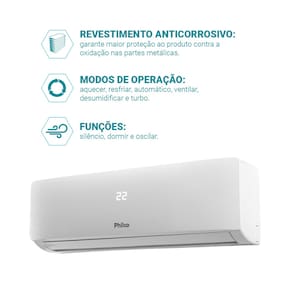 • Gás Ecológico R32 • Classe "F" em eficiência energética • Controle de temperatura digital (16°C a 32°C) • Modo de operação: Esfriar, Aquecer, Desumidificar, Ventilar e Automático