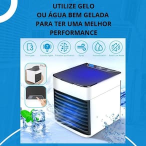 Com excelente custo-benefício, este Mini Ar Condicionado entrega muito em um produto pequeno. O anúncio contém as medidas do produto, fotos que especificam o tamanho e ainda fotos reais do produto.
