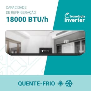 O Ar-Condicionado Prime Air Split Inverter 18000BTUs Quente e Frio 18QG combina tecnologia, potência e sofisticação para entregar climatização eficiente o ano todo. Equipado com tecnologia Eco Inverter, o Ar-Condicionado Prime Air mantém a temperatura estável com até 70% de economia de energia, garantindo conforto contínuo e baixo consumo.