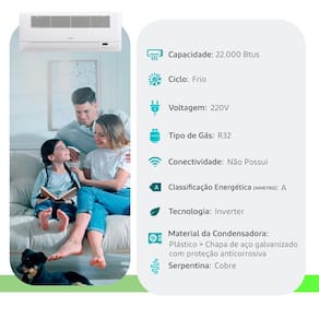 Ar Condicionado Split Cassete 1 Via - Inverter R-32 - G-linea - Gree - 22.000 BTUs - Frio - 220V Monofásico Cassete 1 Via Inverter G-LINEA: climatização silenciosa, eficiente e com menor impacto ambiental O G-LINEA Cassete 1 Via Inverter é a solução ideal para quem busca unir sofisticação, economia de energia e respeito ao meio ambiente. Com um design discreto e instalação embutida no teto, este modelo proporciona climatização eficiente sem interferir na estética do ambiente. Climatize com inteligência e economia Com a tecnologia Inverter, o compressor opera de forma contínua e ajustável, entregando a temperatura ideal com muito mais eficiência. O resultado é um funcionamento mais silencioso, maior durabilidade dos componentes e redução significativa no consumo de energia elétrica, gerando economia real no longo prazo. Moderno e sustentável com fluido R32 Um dos grandes diferenciais deste modelo está no uso do refrigerante R32, reconhecido por sua alta eficiência energética e menor impacto ambiental. Veja as vantagens: Desempenho termodinâmico superior ao R410A; Permite equipamentos mais compactos e leves, com trocadores otimizados; Não agride a camada de ozônio (ODP = 0); GWP = 675, com impacto climático 68% menor em relação ao R410A; Gás pode ser recarregado na fase líquida ou gasosa, facilitando manutenções. Mais conforto e tecnologia em todos os detalhes O Cassete 1 Via G-LINEA reúne recursos que entregam conforto térmico com controle preciso e visual moderno: Display LED digital integrado, para visualização prática e intuitiva; Ventilação 3D, que distribui o ar de forma uniforme por todo o espaço; Proteção anticorrosão GoldFin, ideal para ambientes com alta umidade; Sistema multiproteção, que amplia a durabilidade do equipamento e protege contra falhas elétricas e sobrecargas; Operação extremamente silenciosa, promovendo bem-estar em qualquer horário do dia. Ideal para ambientes modernos e exigentes Seja em escritórios, consultórios, salas comerciais ou residências de alto padrão, o G-LINEA Inverter Cassete 1 Via entrega um ar mais puro, climatização uniforme e um funcionamento confiável. Uma escolha inteligente para quem valoriza conforto, economia e consciência ambiental em um único equipamento.