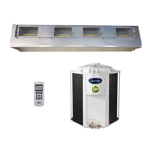 O Ar Condicionado Split Duto Carrier Versatile 60000 BTUs Quente/Frio 38CCU060235HC - 380V Trifásico oferece uma solução eficiente e discreta para ambientes amplos que exigem climatização potente e silenciosa. Sua pressão estática elevada de 8 mmCA, superior aos modelos tradicionais de 3 mmCA, garante maior flexibilidade na instalação dos dutos, permitindo uma melhor distribuição do ar em diferentes espaços. Ideal para quem busca conforto térmico com alto desempenho, o equipamento conta com quatro velocidades de ventilação, que se adaptam facilmente às condições do ambiente e às preferências do usuário.