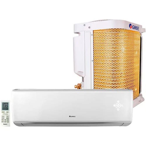 Características: Marca: Gree Modelo: Evaporadora: GWC09QB-D3NNB4C/I | Condensadora: GWC09QB-D3NNB4C/O Tipo: Split Capacidade: 9.000 BTUs Ciclo: Frio Modos de operação; Refrigera, ventila e desumidifica Compressor: Convencional Velocidades: 4 velocidades Gás refrigerante: R-410A Serpentina: Cobre Filtro: Sim Nível de ruído: Baixo Proteção anticorrosão: Sim Swing: Sim Timer: Sim Turbo: Sim Sleep: Sim Aviso troca filtro: Não Wi-Fi: Não Comando de voz: Não Desumidificação: Sim Eficiência energética: A Potência: 814 W Consumo: 17,09 kWh/mês Frequência: 60 Hz Inmetro: 006406/2014