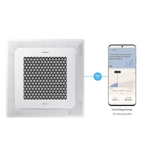 O Ar-Condicionado Split Inverter Cassete 18000 BTUs Samsung Windfree Quente e Frio oferece máximo conforto, eficiência e tecnologia. Equipado com a exclusiva tecnologia WindFree, proporciona resfriamento poderoso sem o desconforto do vento direto. A Tecnologia Digital Inverter da Samsung garante resfriamento rápido e eficiente, mantendo operação silenciosa em todos os níveis de potência. A conexão Wi-Fi via SmartThings permite controle remoto conveniente de qualquer lugar. Recursos como Auto Swing, mudança automática do modo de operação entre resfriamento e aquecimento e função Auto Clean facilitam a manutenção e garantem distribuição uniforme do ar no ambiente. Investir no Ar-Condicionado Split Inverter Cassete Samsung é investir no conforto e qualidade de vida para residências e negócios.