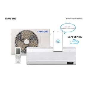 Ar Condicionado Split Inverter Samsung WindFree Connect Sem Vento 9000 BTU/h Frio AR09BVFAAWKNAZ - 220 VoltsÉ sinônimo de conforto sem corrente de ar diretaResfriamento no Modo WindFree:Ao toque de um botão, tenha o máximo de conforto eliminando as correntes de vento geladas do seu ambiente. A Tecnologia WindFree mantém a temperatura ideal e dispersa o ar por meio de 23.000 micro furos gerando uma sensação mais agradável para você e sua família.Mais Economia:No modo WindFree, o compressor Digital Inverter garante uma eficiência energética ainda melhor e consegue atingir uma economia de até 77% de energia comparado aos modelos convencionais. Além disso possui 10 anos de garantia no compressor e é mais silencioso.Único com Controle de Gastos de Energia:Tenha o controle total dos gastos e consumo de energia em tempo real com a nova função SmartThings Energy.Controle de Qualquer Lugar:Utilizando o app SmartThings, é possível ligar e desligar o WindFree Connect e controlar a temperatura. Tudo isso é possível também por comandos simples de voz.Resfriamento 43% mais Rápido:Com um design que tem maiores aberturas, aliado ao poderoso compressor Digital Inverter o ar climatizado alcança até 15m de distância em linha reta, resfriando o ambiente até 43% mais rápido.Filtro Antibacteriano Poderoso:Filtro lavável que mantém o ar fresco e garante a limpeza da parte interna da unidade. Além de coletar pó, ele elimina até 99% de bactérias ao passarem por uma densa malha de filtro antibacteriana.Imagem Meramente Ilustrativa.