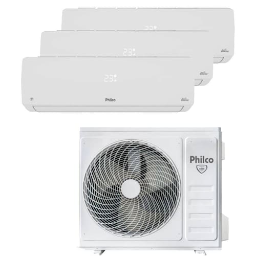 O Philco Tri Split Inverter 27.000 BTUs é a escolha ideal para quem deseja climatizar até três ambientes diferentes com um único sistema. São duas evaporadoras de 9.000 BTUs e uma de 12.000 BTUs, garantindo distribuição uniforme de ar, seja no verão ou no inverno.