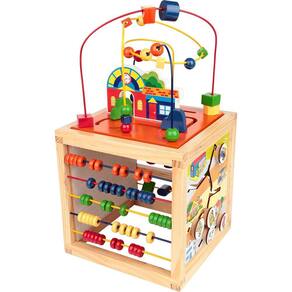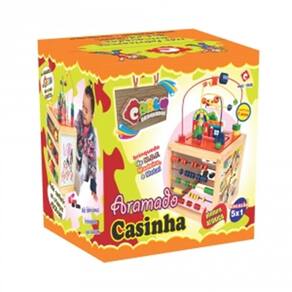 O Aramado Casinha é um brinquedo interativo com 5 diferentes atividades que irão prender a atenção da criançada.Descritivo detalhado: Brinquedo confeccionado em madeira, M.D.F. e arame. Em forma de Cubo com a parte superior e laterias compostas por 5 atividades: Aramado casinha: composto por 03 circuitos e 21 peças de formas variadas e coloridas + 02 carrinhos coloridos. Formas e Cores: composto por 3 "linhas" de arame e 15 peças coloridas. Ábaco: composto por 5 "linhas" de arame e 50 bolinhas coloridas. Quadrinho rabiscos de iniciação: Confeccionado em M.D.F. Padrão BP "Dots", com ilustrações de pontinhos e Carrinhos e caminhos: Composto por 4 peças para seguir o percurso (Ex:supermercado tem a Van de entrega, a fábrica tem o caminhão...). Brinquedo pintado e serigrafado com tinta em policromia ultravioleta atóxica, peças e arames pintados com tinta atóxica colorida. Medida do produto fechado: 27 x 27 x 27 cm.Medida aproximada do produto montado: 27 x 27 x 50 cm. Embalagem: Caixa de papel microondulado ilustrado medindo 29 x 29 x 28 cm. Lacrada com película de P.V.C. encolhível.CE-BRI/ICEPEX - N 00928-96