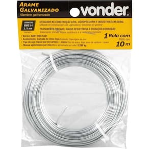 Conteúdo da embalagem: 1 Arame Galvanizado BWG 14 2,11mm Com 10 Metros Vonder
