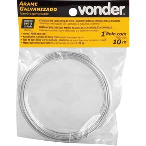 Conteúdo da embalagem: 1 Arame Galvanizado BWG 18 1,24mm Com 10 Metros Vonder