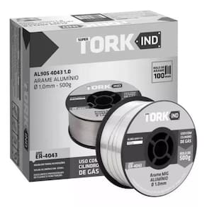 Arame solda mig alumínio para uso com gás 1,0mm super tork Características: O arame tork é destinado a soldagem mig em alumínio e suas ligas em peças de equipamentos para processamento e manuseio de alimentos,botes para navegação, silos, carrocerias de ônibus e furgões, utensílios domésticos, tanques e tambores, tubos, conexões, ferroviários, vagões, indicado para industria química, petroquímica, aeronáutica, Automotiva, alimentícia, caldeiraria e etc... Metal de base 3003 e 6061. Este tipo de arame é utilizado para a soldagem nas diversas ligas de alumínio, com alto teor de silício proporcionando uma maior fluidez na poça de fusão ocasionando um melhor rendimento na soldabilidade, obtendo uma característica excelente na fluidez e na . Esse material não é indicado para aplicar em peças que serão posteriormente anodizadas. Características principais: - o arame sólido contem liga de alumínio com 5% de silício para soldagem pelo processo mig; - soldagem extremamente macia e produtiva; - atende a norma aws a.5-10 er 4043; - foi produzido para soldar ligas similares, alumínio laminado, alumínio fundido e alumínio forjado; - apresenta boa soldabilidade, fluidez e boa , sem respingos e ótimo acabamento; - enrolado no processo capa a capa; - certificação de composição química e de qualidade; - embalagem resistente a umidade; - soldagem em todas as posições. Especificações: - marca: super tork - modelo: al9054043 - diâmetro: 1,0mm - classificação: er4043 - norma aws: a.5-10 - tipo: alsi - gás para utilização: argônio puro ou hélio aproximadamente 5 % argônio - diâmetro do rolo: 100 mm - peso: 500 g : 90 dias defeitos de fabricação