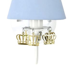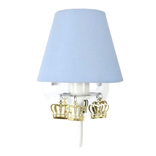 Ter uma iluminação indireta, além da central, deixa o quartinho do bebê mais versátil. Aposte no charme luminotécnico que esta arandela pode proporcionar e impressione com este item de decoração encantador. Dados TécnicosArandela para 1 lâmpada em alumínio com pintura epóxi, decorada com coroas de acrílico e cúpula forrada com tecido Lâmpadas SuportadasEconômicas / Led: Qualquer LâmpadaIncandescente amarela : Até 60w por Soquete MedidasLargura: 15 cmAltura: 39 cm com pelúcia