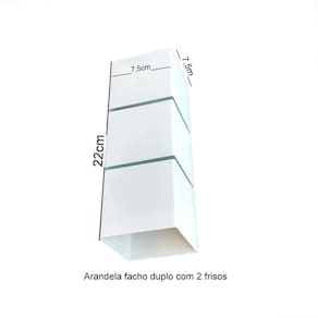 Material: Alumínio e Difusor em Vidro Medidas: Largura 7,5cm x Altura 22cm x Profundidade 7,5cm Cor: Branco Lâmpadas: 02 Lâmpadas G9 obs. Lâmpadas não inclusa no produto Compatível com Lâmpadas de Led G9 Modelo: Sobrepor Para uso Interno ou Externo Com Proteção Contra Chuva Voltagem: Bivolt Peso: 1 kg : 90 dias contra defeito de fabricação Marca: Não Informado