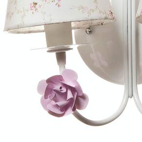 Ter uma iluminação indireta, além da central, deixa o quartinho do bebê mais versátil. Aposte no charme luminotécnico que esta arandela pode propocionar e impressione com este item de decoração encantador. Dados TécnicosArandela para 2 lâmpadas em alumínio com pintura epóxi, decorada com 2 florzinhas de metal e cúpulas forradas com tecido. Lâmpadas SuportadasEconômicas / Led: Qualquer LâmpadaIncandescente (amarela): Até 60w por Soquete MedidasLargura: 30 cmAltura: 25 cm