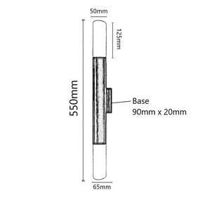 Fabricada em alumínio e acrílico, a arandela possui um acabamento fosco nas cores preto, dourado ou branco, garantindo sofisticação e beleza para o seu espaço. As medidas da arandela são 55cm de comprimento, 5cm de largura e 6,5cm de profundidade. A base de fixação possui as dimensões de 9cm x 2cm.