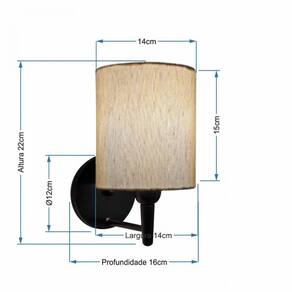 Arandela Cilíndrica Md-2009 Base Preto Cúpula em Tecido 14x15cm Linho Bege - Bivolt