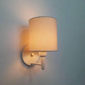 Arandela de Cabeceira e Camarim Cilíndrica Vivare Md-2009 Base Alumínio Branca Cúpula em Tecido