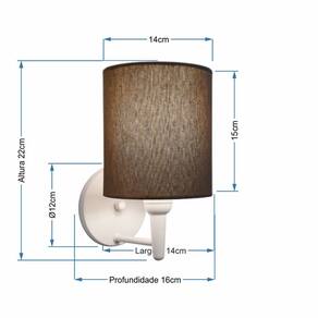 Arandela de parede Cilíndrica Md-2009 Base Branca Cúpula em Tecido 14x15cm Caqui - BivoltAs arandelas Lustres Vivare são elementos versáteis e elegantes que podem transformar qualquer ambiente em um espaço cheio de estilo. Seja para adicionar uma iluminação suave, destacar uma parede ou criar um efeito de luz diferenciado.Dimensão:Cúpula em Tecido: 14x15cm Arandela de parede Montada: Altura 22cm Largura 14cm Profundidade 16cm Formato: Cilíndrico Tamanho: Pequeno Especificação:Material: Cúpula em Tecido Estrutura em Alumínio Base Parede: Diâmetro 11x1,2cm Resistente: Á Maresia Voltagem: 110V/220V Liga e Desliga: Não Tipo de Soquete: E27 Lâmpada Utilizada: Led Bulbo até 16w ou Fluorescente Espiral até 25w Cada Capacidade de Lâmpadas: 1 Observação:Acompanha Lâmpada: Não Possui Led Integrado: Não Garantia: 12 Meses Manual de Instalação: Sim Arandela de parede Montada: Sim Controle de Luminosidade: Não Tipo de Embalagem: Caixa Conservação e Manutenção do Produto:A Limpeza deve ser realizada com o produto desligado. Remova o lustre que pode ser lavado com sabão neutro. Nunca utilize produtos químicos e abrasivos Dica:Antes de comprar o seu produto verifique as medidas, o local onde pretende instalar e se necessário o serviço de um profissional qualificado.