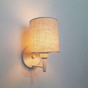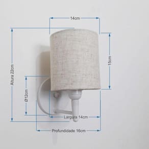 Arandela de Cabeceira e Camarim Cilíndrica Vivare Md-2009 Base Alumínio Branca Cúpula em Tecido