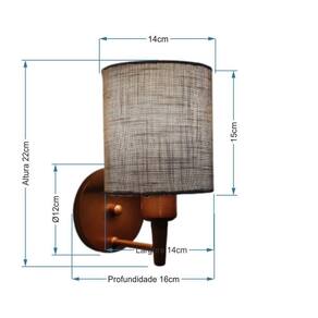 Arandela Cilíndrica Md-2009 Base Cobre Cúpula Em Tecido 14x15cm Cinza - Bivolt Arandela de parede Cilíndrica Md-2009 Base Cobre Cúpula em Tecido 14x15cm Cinza - BivoltAs arandelas Lustres Vivare são elementos versáteis e elegantes que podem transformar qualquer ambiente em um espaço cheio de estilo. Seja para adicionar uma iluminação suave, destacar uma parede ou criar um efeito de luz diferenciado.Dimensão:Cúpula em Tecido: 14x15cm Arandela de parede Montada: Altura 22cm Largura 14cm Profundidade 16cm Formato: Cilíndrico Tamanho: Pequeno Especificação:Material: Cúpula em Tecido Estrutura em Alumínio Base Parede: Diâmetro 11x1,2cm Resistente: Á Maresia Voltagem: 110V/220V Liga e Desliga: Não Tipo de Soquete: E27 Lâmpada Utilizada: Led Bulbo até 16w ou Fluorescente Espiral até 25w Cada Capacidade de Lâmpadas: 1 Observação:Acompanha Lâmpada: Não Possui Led Integrado: Não Garantia: 12 Meses Manual de Instalação: Sim Arandela de parede Montada: Sim Controle de Luminosidade: Não Tipo de Embalagem: Caixa Conservação e Manutenção do Produto:A Limpeza deve ser realizada com o produto desligado. Remova o lustre que pode ser lavado com sabão neutro. Nunca utilize produtos químicos e abrasivos Dica:Antes de comprar o seu produto verifique as medidas, o local onde pretende instalar e se necessário o serviço de um profissional qualificado.