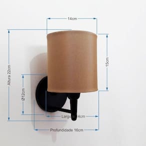 Arandela Cilindrica Md-2009 Base Preto Cúpula Em Tecido 14x15cm Palha - Bivolt Arandela de parede Cilindrica Md-2009 Base Preta Cúpula em Tecido 14x15cm PalhaAs arandelas Lustres Vivare são elementos versáteis e elegantes que podem transformar qualquer ambiente em um espaço cheio de estilo. Seja para adicionar uma iluminação suave, destacar uma parede ou criar um efeito de luz diferenciado.Dimensão:Cúpula em Tecido: 14x15cm Arandela de parede Montada: Altura 22cm Largura 14cm Profundidade 16cm Formato: Cilíndrico Tamanho: Pequeno Especificação:Material: Cúpula em Tecido Estrutura em Alumínio Base Parede: Diâmetro 11x1,2cm Resistente: Á Maresia Voltagem: 110V/220V Liga e Desliga: Não Tipo de Soquete: E27 Lâmpada Utilizada: Led Bulbo Até 16w ou Fluorescente Espiral Até 25w Cada Capacidade de Lâmpadas: 1 Observação:Acompanha Lâmpada: Não Possui Led Integrado: Não Garantia: 12 Meses Manual de Instalação: Sim Arandela de parede Montada: Sim Controle de Luminosidade: Não Tipo de Embalagem: Caixa Conservação e Manutenção do Produto:A Limpeza deve ser realizada com o produto desligado. Remova o lustre que pode ser lavado com sabão neutro. Nunca utilize produtos químicos e abrasivos Dica:Antes de comprar o seu produto verifique as medidas, o local onde pretende instalar e se necessário o serviço de um profissional qualificado.