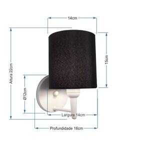 Arandela Cilíndrica Vivare Md-2009 Base Alumínio Branco Cúpula em Tecido - Bivolt - Cor: Branco-preto | Voltagem: 127/220V
