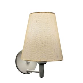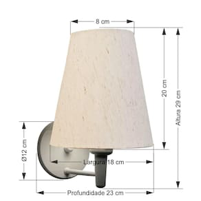 Arandela Cone Vivare Md-2007 Base Alumínio Branco Cúpula em Tecido - Bivolt - Cor: Branco-linho-bege | Voltagem: 127/220V