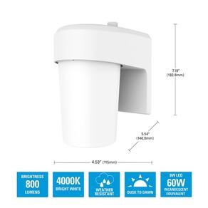 A arandela externa de LED branca HALO FE de 1 luz com 1 luz e do anoitecer ao amanhecer
