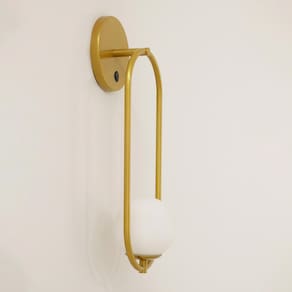 Tudo para iluminar seu ambiente com muito charme Perfeito para todos os ambientes Modelo: arandela Cor es : dourado Material: alumínio Canopla de teto: alumínio 12cm Luminária: 1 soquete g9 Número de lâmpadas: 1 lâmpadas não inclusas Voltagem: 127v/220v Medida: 42 x 14 cm Peso líquido: 0,25kg Conteúdo da embalagem: 1 luminária de parede