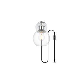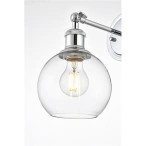 Simplicidade e minimalismo são as novas formas de beleza quando se trata de estilo e design. Mostrada em uma sombra de vidro, esta arandela de parede é versátil e pode ser colocada no quarto, na sala de estar, na entrada ou no corredor. É exatamente o que você precisa para iluminar um pouco onde precisar. Gire a alavanca na parte superior da cortina para ajustar a iluminação ao lado da cama ou no canto da biblioteca. Compatível com dimmers, para que você tenha a quantidade certa de luz em qualquer hora do dia. Disponível em vários acabamentos. Vem com um cabo de alimentação de dois pinos de seis pés de comprimento. Pressione suavemente o interruptor basculante diretamente no cabo para ligar ou desligar. Características: Material: metal (ferro), vidro Acabamento: cromado, transparente, preto Uso do quarto: banheiro Iluminado por 1 lâmpada E26, lâmpadas não incluídasAjuste a sombra na parte superior para obter a iluminação perfeita. Regulável, compatível com um interruptor dimmer (não fornecido) Vem com um interruptor liga/desliga em um interruptor de seis pés de comprimento fio com um plugue de dois pinos Conecte sua luz conectando-a para um item facilmente movível Forma da sombra: placa traseira redonda incluídaPortáteis: interruptor em linha Fio incluídoDireção da luz: para baixo Localização: