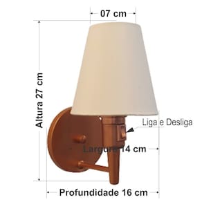 Arandela de parede Montada: Altura 27cm Largura 14cm Profundidade 16cm