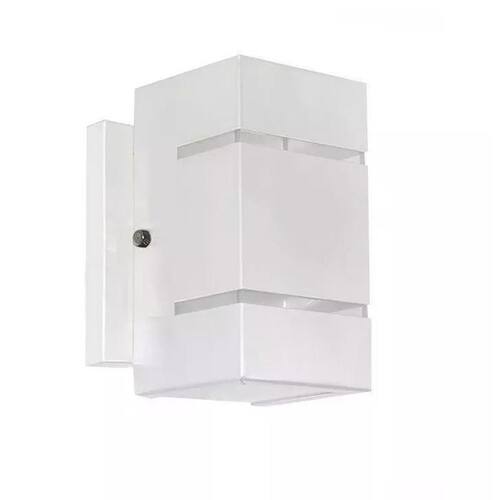 Arandela Dois Fachos Frisos Efeito Uso Externo 1401 Branco Texturizado Arandela Dois Fachos Frisos Efeito Uso Externo 1401 - Branco Texturizado n Arandela 2 fachos, em alumínio não enferruja. Ideal para ser Utilizado em área externa e interna, com pintura eletrostática e vidros tem uma durabilidade maior. Especificações: Material: alumínio, vidro. Voltagem: bivolt. Soquete: G9 Usa 1 lâmpada de led de até 9w ou halopim de até 40w. n Marca: Não Informado