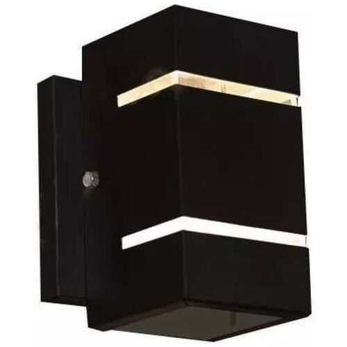 Arandela Dois Fachos Frisos Efeito Uso Externo 1401 Preto Texturizado Arandela Dois Fachos Frisos Efeito Uso Externo 1401 - Preto Texturizado n Arandela 2 fachos, em alumínio não enferruja. Ideal para ser Utilizado em área externa e interna, com pintura eletrostática e vidros tem uma durabilidade maior. Especificações: Material: alumínio, vidro. Voltagem: bivolt. Soquete: G9 Usa 1 lâmpada de led de até 9w ou halopim de até 40w. n Marca: Não Informado