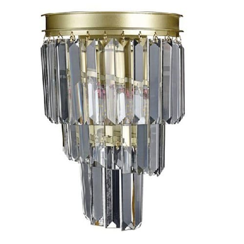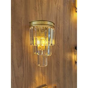 Cód: 13770-PLArandela Dourada com CristaisSoquete: 2*E14 (Lâmpadas não inclusas)Material: Metal e CristalCor: Dourado e TransparenteDimensões: 32x20x12cm (AxLxC)
