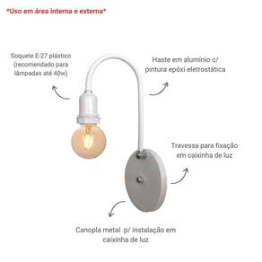 Diferenciais: Iluminação eficiente e agradável Design que complementa qualquer decoração Compatível com lâmpadas LED, proporcionando economia de Energia Pintura epóxi Eletrostática