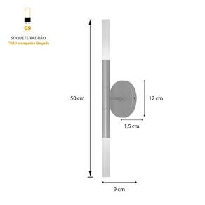 Tudo para iluminar seu ambiente com muito charme Perfeito para todos os ambientes Modelo: single light Cor es : bronze Material: alumínio Base canopla : 12 x 1.5cm Luminária: soquete g9 Número de lâmpadas: 2 lâmpadas não inclusas Voltagem: 127v/220v Medida: 12 x 50cm Conteúdo da embalagem: 1 luminária Profundidade : 9cm