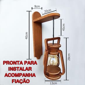 Luminária lampião rustico, fabricado em mdf e pintado a mão. Envernizado deixando um acabamento envelhecido perfeito.