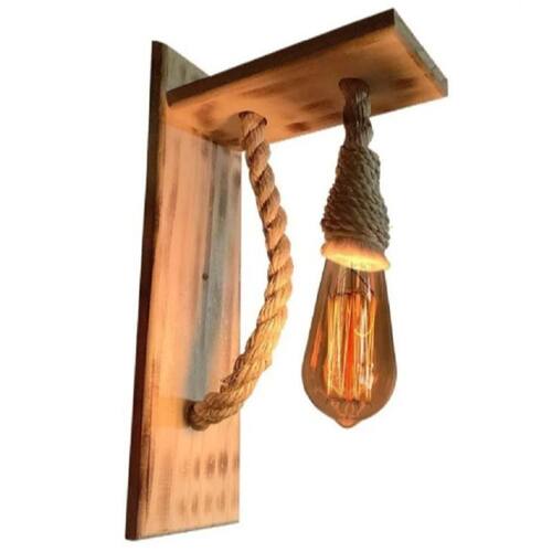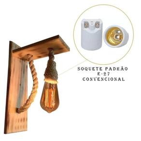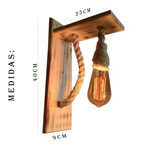 Especificações Técnicas Marca: Adoraluz Modelo: 202 Soquete: E-27 não acompanha lâmpadas Cor: Madeira rústica natural Pinus Material: Madeira e corda Sisal Base da placa: Madeira Local indicado: Parede Uso indicado: Interno Quantidade: 02 Unidade Medidas da placa: 40cm x 09cm x 25 cm