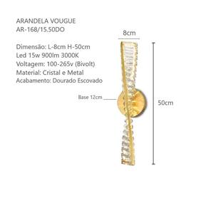 Arandela Moderna Dourada Vougue 50Cm Led 3000K Mais Luz