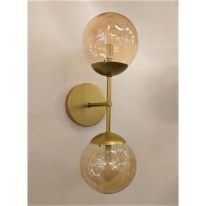 Arandela Moderna JabuticabaMateriais: Metal, VidroCor: DouradoMedidas: Largura 13cm x Altura 40cm x Profundidade 18cmGlobo de Vidro: Diâmetro 13cmLâmpadas: 2 Lâmpadas Modelo Bipino G9 Obs. Lâmpadas Não Inclusa Compatível com Lâmpadas Led Bipino G9Modelo: Sobrepor Arandela Para Uso InternoVoltagem: BivoltItens Inclusos:1 Arandela2 Globos de Vidro