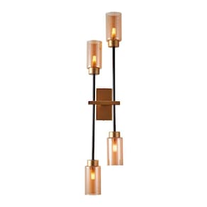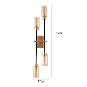 Arandela Nordecor Tosh Duo G9 Bivolt Dourado/preto - Dimensões AxLxP (mm): 790x170- Material: Metal e Vidro- Garantia: 1 ano junto ao fabricante- Referência: 2554 (Dourado Fosco, Preto e Âmbar)- Voltagem: Bivolt- Grau de Proteção: IP 20- Local de Uso: Interno- Lâmpada Inclusa: Não- Número de Lâmpadas: 4- Soquete: G9 O que vem na caixa:1 Arandela