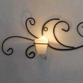 Arandela Ondas 99 cmAcompanha 3 vela no copinho na cor brancoProdutos da marca Velitas.Somos uma fábrica, de velas e ferros decorativos, desde de 1984 no mercado.Arandela:Peça em ferro com pintura eletrostática, que garante uma maior resistência e durabilidade em comparação com peças esmaltadas ou com pintura spray.Pintura marrom escura, quase preta, com minúsculos pontos pretos e dourados. A pintura dá um efeito especial a peça.Peça produzida de forma artesanal.Medidas:Altura: 13 cm largura: 99 cm profundidade: 8 cmPeça desenhada para uso na parede, não há risco de a chama estragar a pintura se forem usadas somente velas de parafina pura.Para paredes de tijolo, recomendamos o uso de bucha com parafuso, o mais seguro é o parafuso em L, ele garante uma melhor fixação.Copinho de vidro:O copo de vidro é da Nadir Figueiredo, além de ser resistente ele é facilmente encontrado em vários lugares no Brasil.Medidas do copo:altura: 7 cm diâmetro superior boca : 5,2 cm diâmetro inferior base : 3,5 cmVelas:Velas de parafina pura Petrobras, contêm apenas corante nas velas coloridas.A vela pura garante uma maior durabilidade, não produz fumaça preta que possa sujar a parede ou criar um aspecto desagradável, e também possui um cheiro suave e natural da parafina. Nossas velas no copinho foram projetadas para fácil reposição já que são removíveis, o produto acompanha indicações de uso para facilitar a limpeza do copo após a utilização. Duração da vela:Aproximadamente 12 horas, o tempo pode variar de acordo com a temperatura ambiente.Medidas:altura: 5,2 cm diâmetro superior boca : 4,5 cm diâmetro inferior base : 2,7 cm Imagens meramente ilustrativas, o produto pode apresentar pequenas variações por se tratar de um produto artesanal. Aviso de segurança:Acenda as velas longe de produtos inflamáveis, de corrente de ar e em recipiente protetor.Não deixe velas acesas desacompanhadas. Marca: Velitas (r)